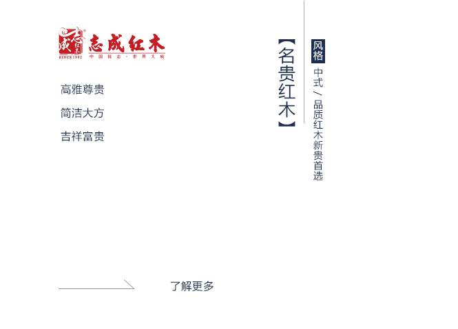 承載30年風(fēng)雨歷程,志成紅木胸懷中國紅木夢,以發(fā)展自主品牌為己任,立足自主創(chuàng)新,打造中式家居四大品牌,構(gòu)建起一條集研發(fā)、設(shè)計、生產(chǎn)、銷售于一體的完整產(chǎn)業(yè)鏈。